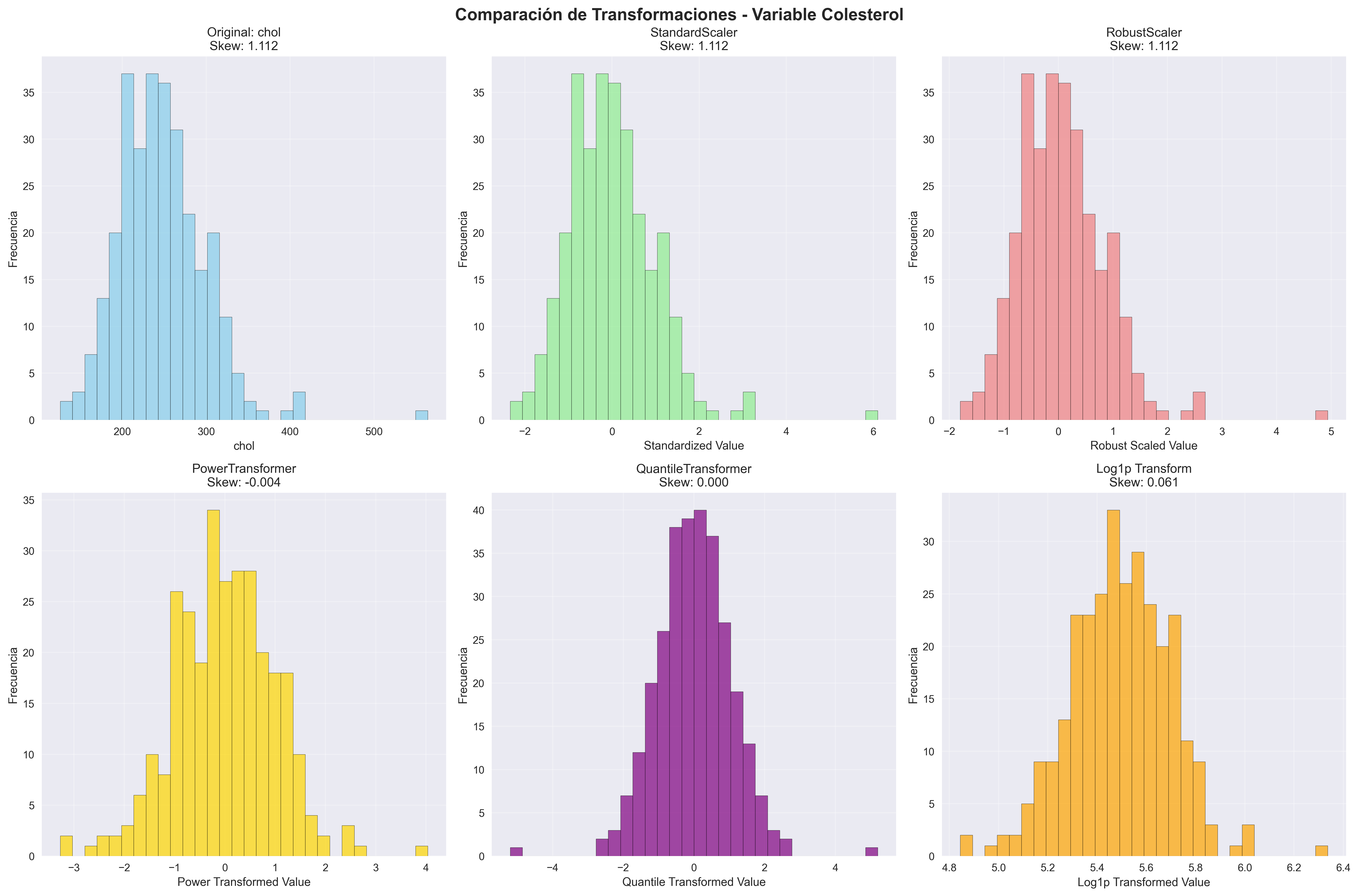 PowerTransformer, QuantileTransformer y Log Transform